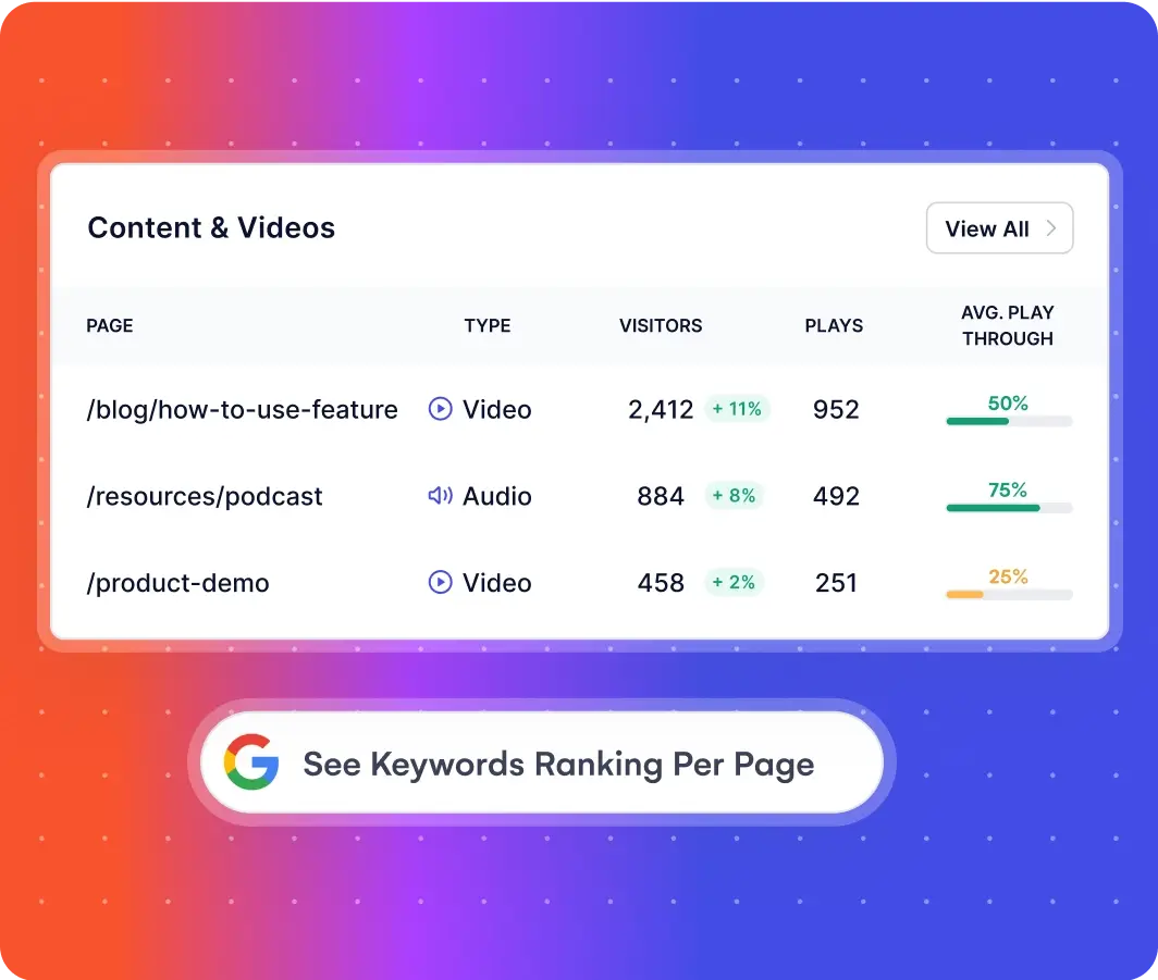 Analyze your landing pages, product pages, blog posts, see which pages rank in SEO, engage peiple and drive conversions.