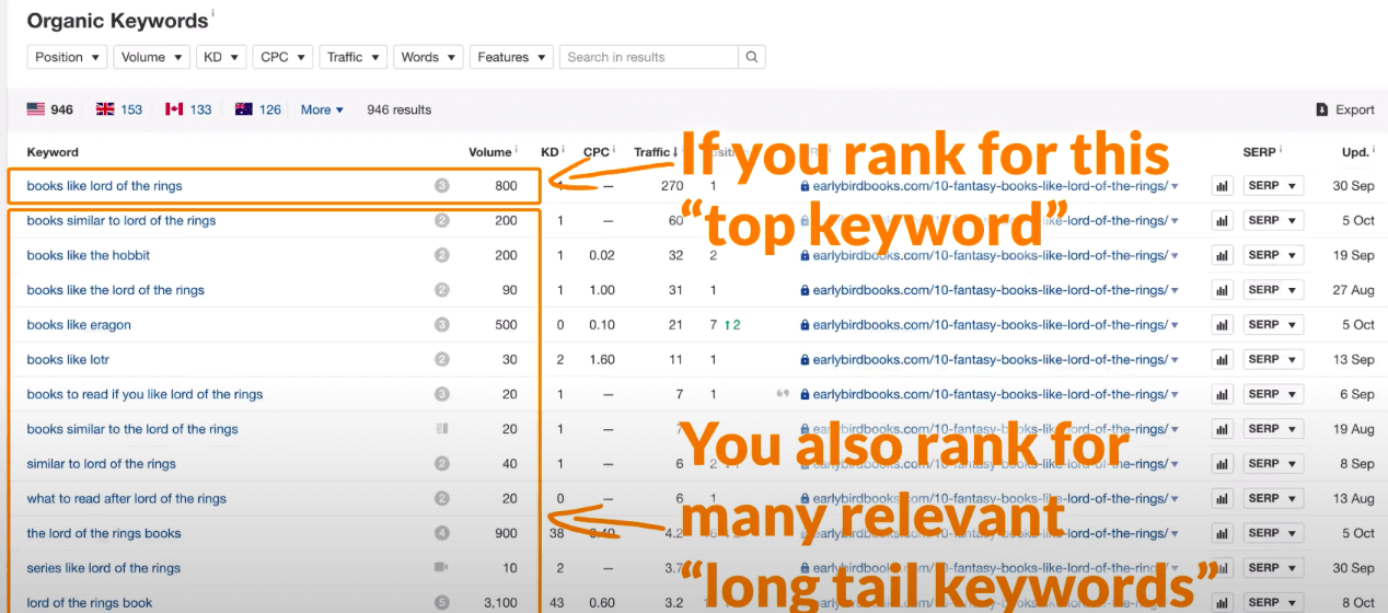 A deeper coverage of a topic with more written content will lead to ranking in Google for multiple related keywords and getting more search traffic in total.