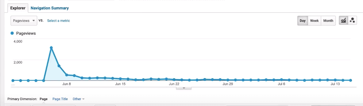A lot of blog posts experience the “spike of hope” where there is a spike of traffic after publishing because of the promotions to email subscribers, social followers, niche communities like Reddit, Slack channels, FB groups, etc.